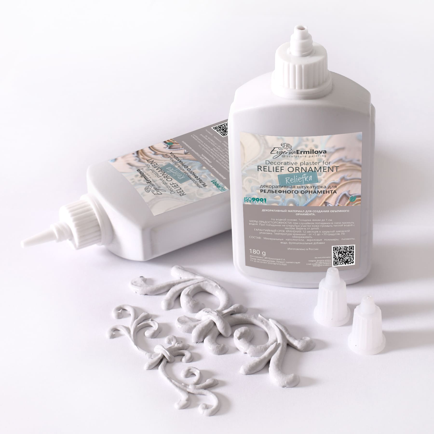 Reliefka "Ash" is a special decorative plaster for relief painting. Allows you to create a three-dimensional ornament, with a thickness of 3 to 10 mm. You need to put pressure on the tube and draw the element. It can be used to work in the pasty technique of painting with a palette knife or with a stencil. Pre-priming of the surface is not necessary.