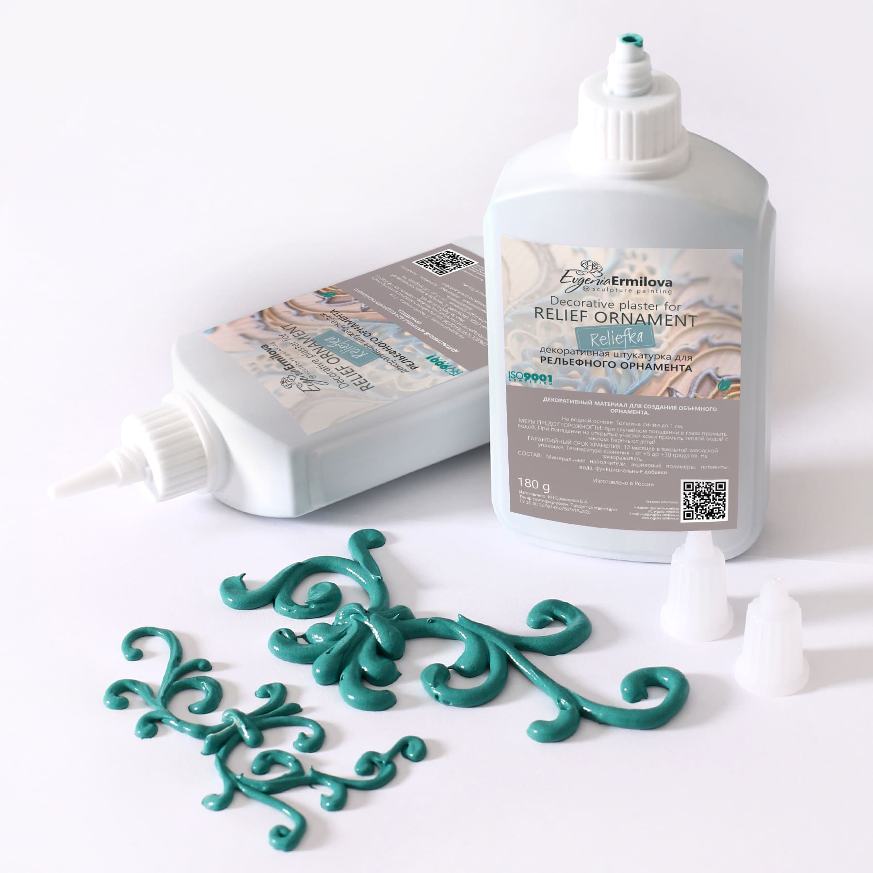 Special decorative plaster for creating a three-dimensional ornament with a thickness of 3 to 10 mm. The color of the plaster for the relief ornament Reliefka corresponds to the colors of the plaster for the sculptural painting of the brand Evgenia Ermilova.