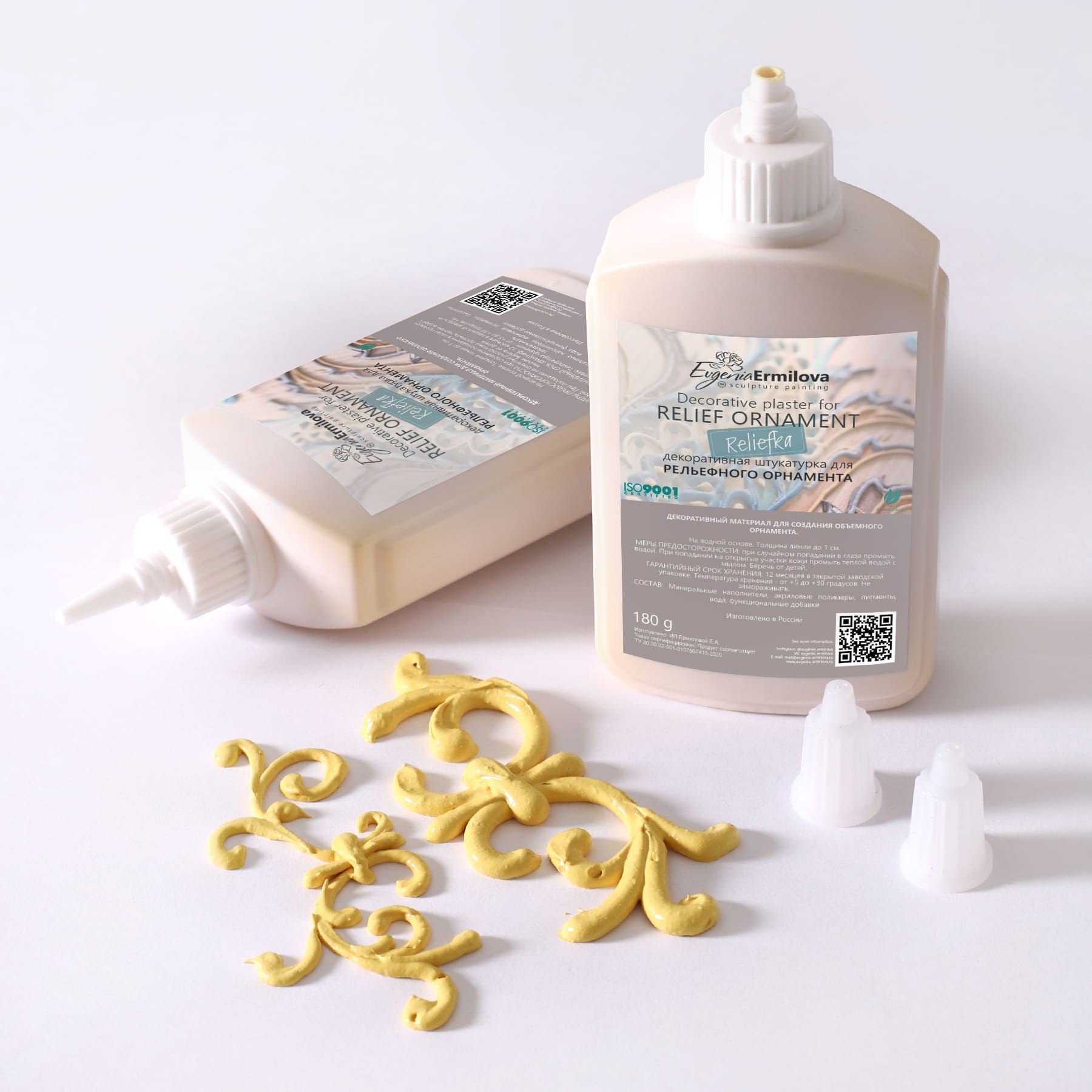 Reliefka "Just yellow" is a homogeneous, plastic, fraction-free, durable decorative plaster after drying. Specially designed for relief painting with plaster. Allows you to create a three-dimensional ornament, with a thickness of 3 to 10 mm.