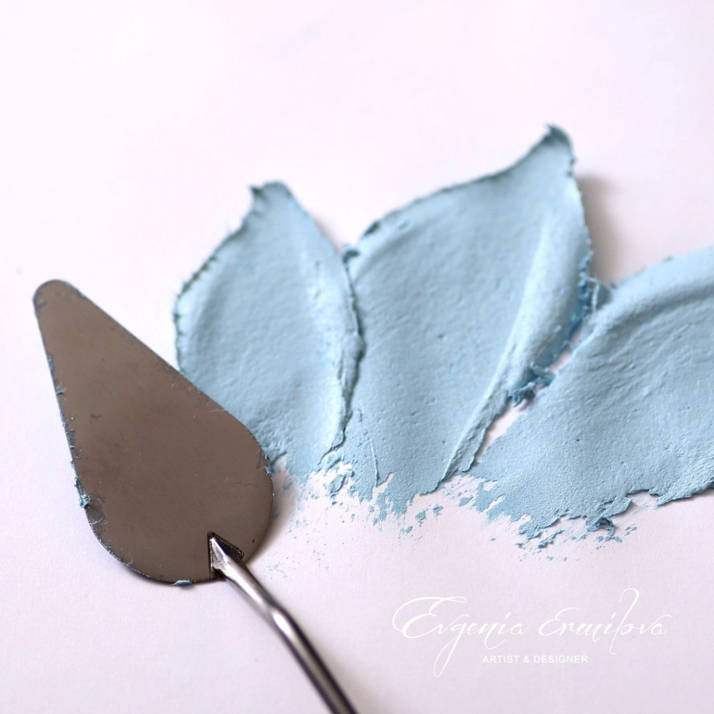 Palette knives are: diamond-shaped, trapezoidal, teardrop-shaped, with a pointed or rounded blade. The different shape of the blade helps to achieve a different effect.