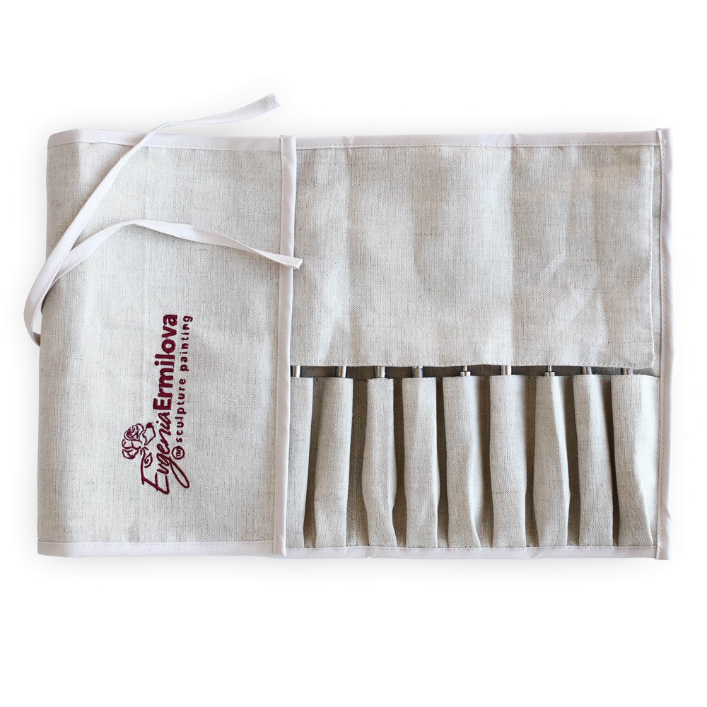 A set of all the 17 palette knives specially designed for sculptural painting of Evgenia Ermilova TM brand, in a nice and convenient textile case.